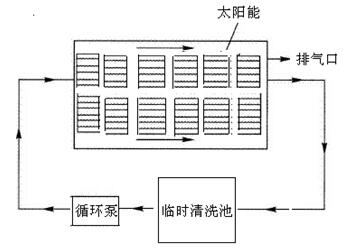 1、打開太陽能熱水器進水口和出水口,現(xiàn)場建立臨時水池和循環(huán)系統(tǒng)。如圖下: