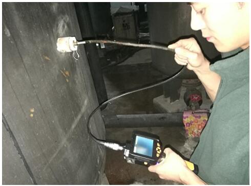2)工作人員用內窺鏡查看、清洗前及清洗后的效果